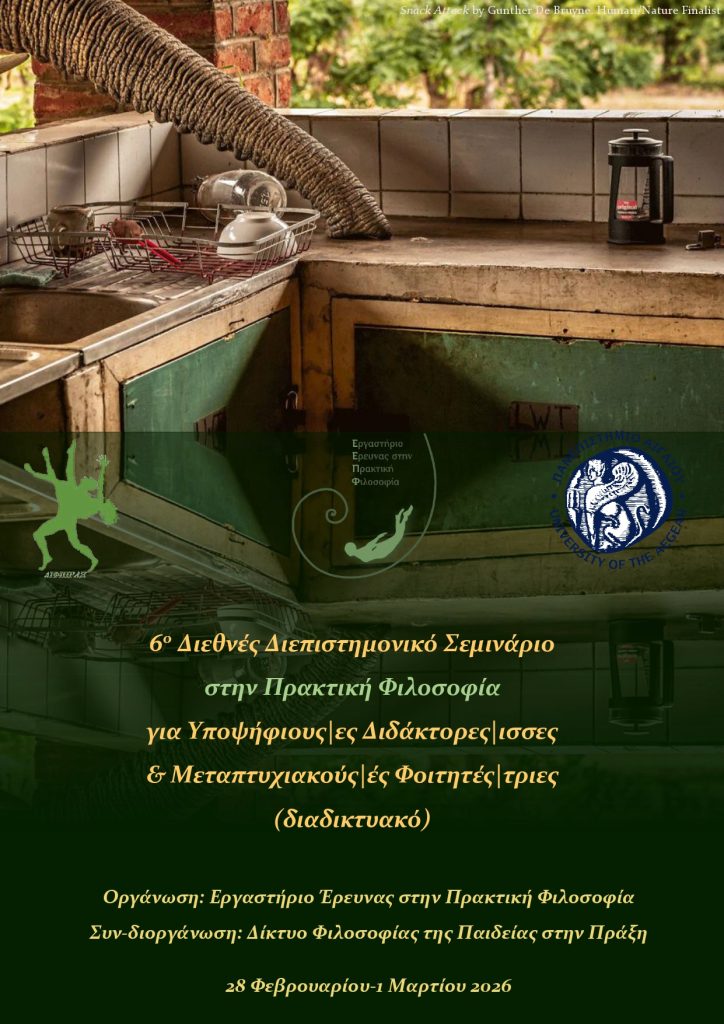 On the basis of the principle of interdisciplinarity followed in the L.R.P.Ph., the theme is free. Doctoral & master students may present their research or any other subject related to it or other areas of their research interests and needs, with the ultimate goal of highlighting & discussing the relationship of these choices to practical philosophy.